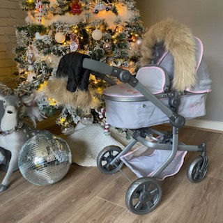 White Coach Built Dolls Pram faux fur hood & handmuff set