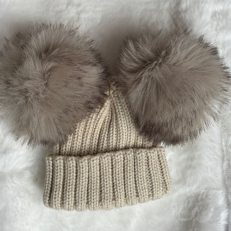 Kinder Double Pom Pom Faux Fur Knitted Hat Beige